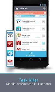 · Kill all apps at once, define protected apps which won’t be killed, set auto kill when screen gets locked, mark single or multiple apps to kill.