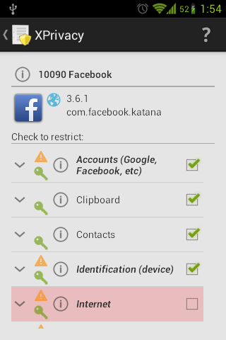 XPrivacy can prevent applications from leaking privacy sensitive data. XPrivacy can restrict the categories of data an application can access. This is done by feeding an application with no or fake data. There are several data categories which can be restricted, for example contacts or location. For example, if you restrict access to contacts for an application, this will result in sending an empty contact list to the application. Similarly, restricting an application’s access to your location will result in a fake location being sent to the application.