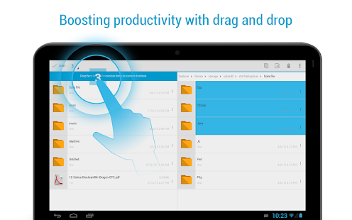 This is the first multi-panel file explorer on Android OS. It features “Drag & drop anywhere” to bring the best user experience.