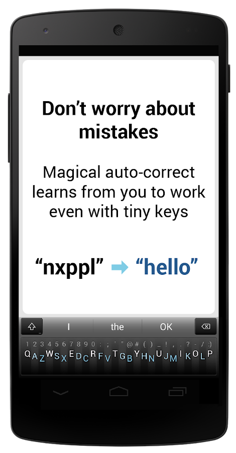 This tiny keyboard frees up your screen space—so you interact with more of your content—while allowing you to type fast and accurately. There’s no need to worry about being precise, thanks to magical auto-correction that learns from you.