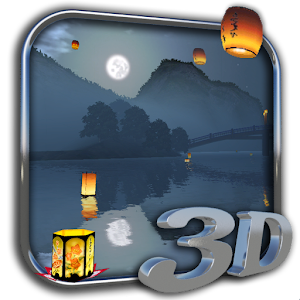 This live wallpaper represents a typical night view of Lantern Festival celebration. The landscape is lit by fool moon, and lanterns are both in the air and on the surface of the river.